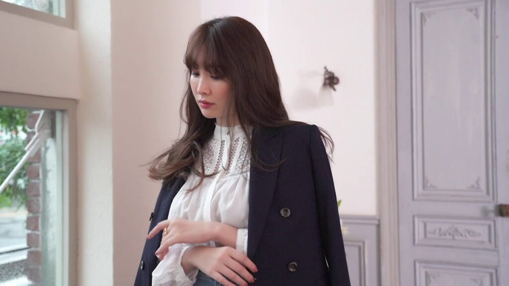 エレガントで優美なシルエットのテーラリングで仕立てたブレザー。