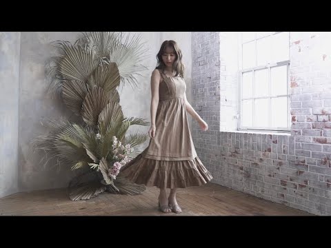 スクエアのネックはデコルテを綺麗に魅せてくれ、バスト部分に入ったダーツが立体的な胸元を演出。