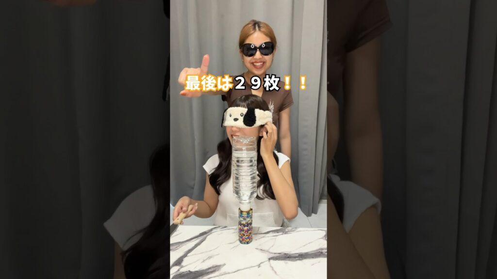 ゆん: 大得意なコインだるま落としなら目隠ししてもできるもん!!#shorts