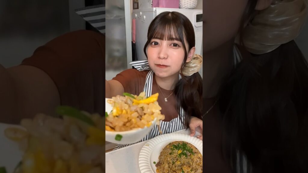 ゆん: 【簡単】冷蔵庫の食材だけで本格パラパラねぎ豚炒飯🐷🔥#shorts