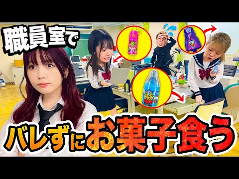 【対決】職員室に大量のお菓子!?先生にバレずにお菓子食べてみた!
