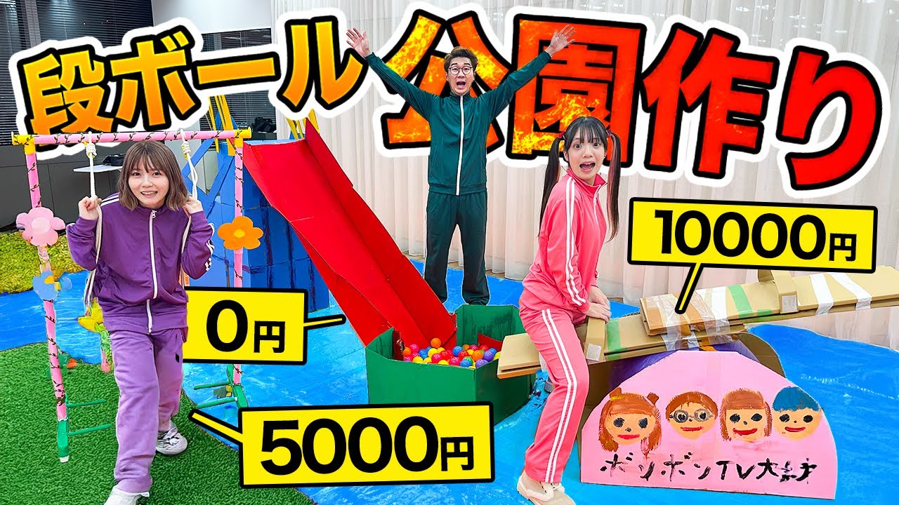 【対決】予算1万円vs5000円vs0円!!ダンボール公園作り対決やったら楽しすぎた!!!【滑り台 / ブランコ / シーソー】