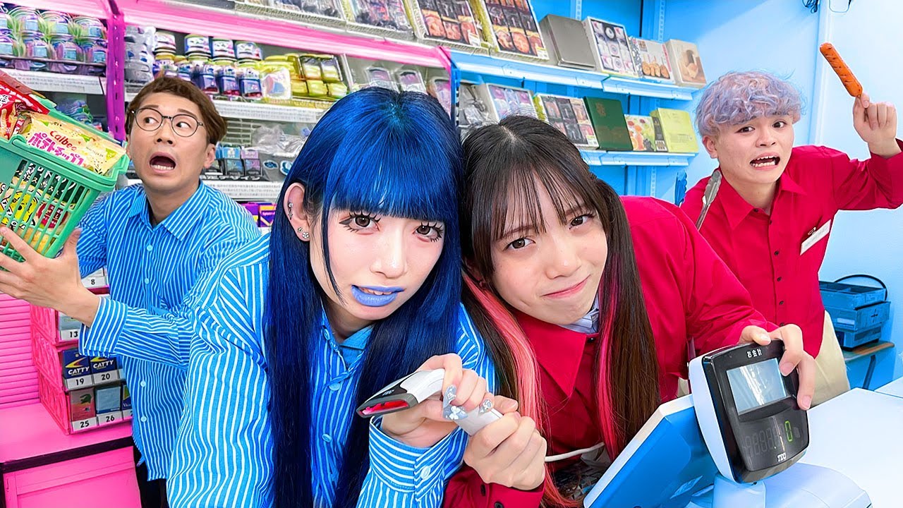 【対決】レッドvsブルーのコンビニ対決!どっちが良い店員か対決したら閉店の危機に!?【セブンイレブン / ローソン】