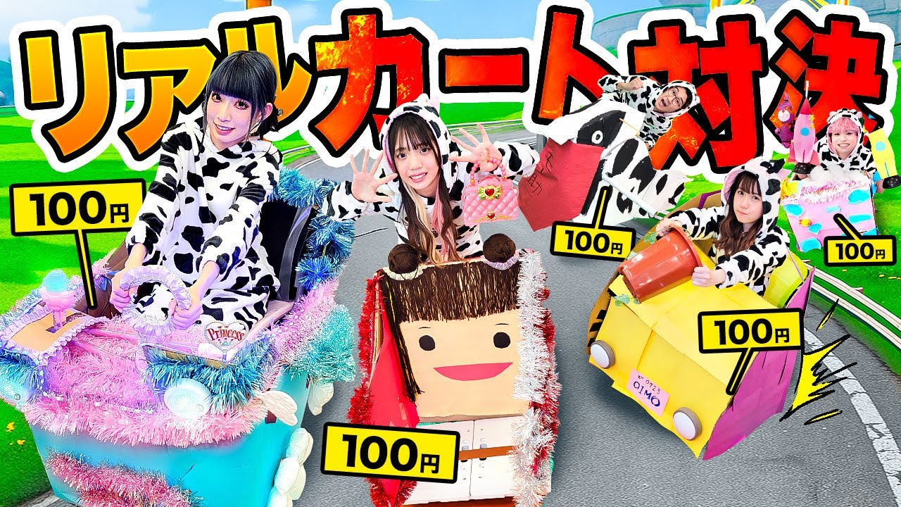 【完全再現】全員ウシ!?100均のものだけでリアルカート作り対決やったら大惨事に!!!【対決】