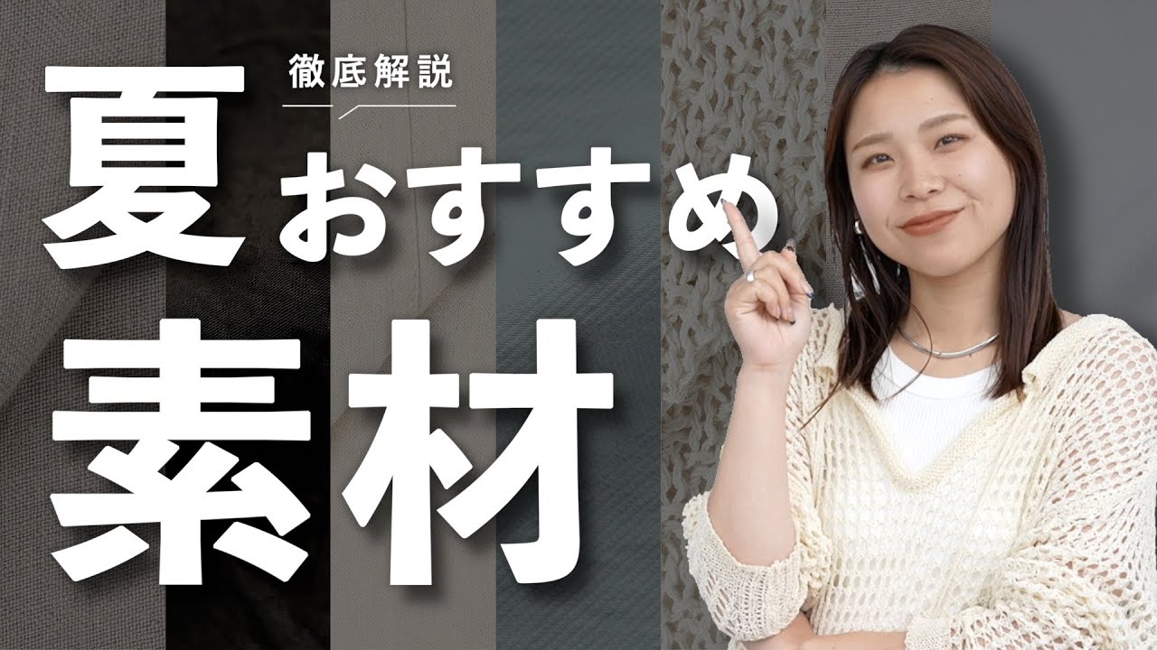 どうもコスパッションゆれです本日はよく 耳にするけど意外と知らない夏におすめの 素材について徹底解説していきますこの チャンネルではおしゃれをセンスだけでは なく理論で徹底的に解説してきていて おしゃれに関する動画これまで950本 以上上げてきましたまた私自身がモデル 体系ではないからこそスタイルアップの コツやイり自分を魅力的に見せる方法に ついてもお話していきます是です最後まで 見ていってくださいはいというわけでです ね皆さんついに来ました素材 もうねめちゃくちゃリクエストをいいて おりましたありがとうございますでなんか さそのお買い物とかしてるとさ聞くには 効くんですよその単語ねあこれは理念が こうブレンドされてるのでなんかすごく 涼しくてとかこれってレオンが入ってる からすごいお時間も綺麗でとか ポリエステル入ってるのでなんかお手入れ いいですよとか店員さんとかからもう聞い たりはするんだけどもなんとなくふーん なんかレオンでそうなってあなっていいん だなんか理念が夏っぽくてなんかいいんだ みたいなことさなんか名前は聞いてるけど なんか実態がつめなくないですかって思っ たわけですよで私自身ま自分のブランドで お洋服を作るようになっていったりとか そういう過程でこういう素材があるんだと かこういう素材を入れると逆にこうなっ ちゃうんだとかなんかいろんな派遣があっ たりちょっとずつ知識が深まってきたので 今回はよく名前を聞く素材をピックアップ してですね一体どんな特徴があるのか どんな方におすすめなのかみたいなところ を踏まえて徹底解説していこうと思います この動画見終わった後にその季節ならでは の素材楽しんでみたいなとか服のタグ ちょっとチェックしてみようかなみたいな 気持ちになってもらえたらもう本当に最高 よければ是非最後まで見ていってください それでは早速いきましょうでまずこちら 素材のを説明していく前にですね今回の 動画の内容としては素材って言ってもです ね配合だったり折り方だったりどの アイテムに使うのかどのアイテムのどの 部分に使うのかとかによって結構一概に 見えないというかめっちゃ状況が変わって きちゃうんですよ大体の商品ってその素材 と掛け合わせる構造このミックスされた 完成系によって綺麗目カジュアルとかの 見え方だったりあと洗える洗えないみたい なところも変わってきちゃうので今回一概 にですねこちらの素材ですこれは洗えます とかこちらの素材ですこれはもう カジュアルな服にしか使われませんとか そういう極端なことはあんまり言えないん ですけどもそちらをですね是非ご了承 くださいませで今回ご紹介していく素材は 全部で7つありまして上から順番にざっと リネンコットンレイオンワシリオセル トアセトラミンこの7つをご紹介して いこうと思いますそれではまず1つ目の 素材リ念ご紹介していくんですがこれは もう本当ユニクロとかGUでも年ブレンド なんちゃかパンツとかよく夏になると聞く 定番の素材かなと思うんですがまずこちら の素材の特性としてはですね通気性給水性 に優れていますなので風を通しやすくって 涼しいそして汗もちゃんと吸ってくれる そういった素材ですでこの理念っていうの はですね合成繊維ではなく天然繊維と呼ば れるものですで素材ってねこのざっくり 分けるとまず天然繊維と化学繊維っていう ものに分けられるんですよ天然繊維って いうのはですねま文字通り動物とか植物を 原料にして作られている素材化学繊維って いうのは例えば石油とかま色々あるんだ けどもそういう動物とか植物とかだけでは ない何かしら科学物質とかも使って作った よっていうような繊維この天然繊維科学 繊維っていうのがまずバンバンと大きく あってでさらにですねこの科学繊維の中で も石油とかじゃなくって木材パルプから 作りましたみたいな再生繊維とかもあるし 科学100でも天然100でもどっちでも ないですみたいな反合成繊維とかね いろんな種類に分かれていますまただ ざっくり言うと天然繊維科学繊維この2つ に分かれていきます天然繊維の方がですね 結構カジュアルになりやすいですこ風合が 出しやすかったりその風合が出されること によってアイテム自体に多しがされて要素 が増えるからカジュアルに見えるみたいな ことにもつがるんですけど全部の素材が そうではないけども基本的に傾向としては 天然繊維の方がよりカジュアルに風合とか も重視してお洋服を楽しんでいく感じで 一方科学繊維の方がつるっとしてたり つやっとしてたりちょっと綺麗めなものが 多いなっていう傾向だったりとかあとは 耐久性に優れているものとかいろんな ジャンルがですね取り揃えられております で例えばこの利念の給水性とかそういうの 1つとっても堀エステルとかもうちょっと 合成繊維になるとですねちょっとこもり やすかったりとかするんですね熱とか水と かが自然と牛水されたりとか放