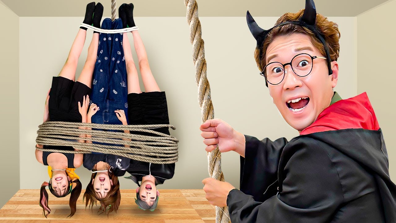 妹たちがぐるぐる巻きにされて吊るされました…【対決】