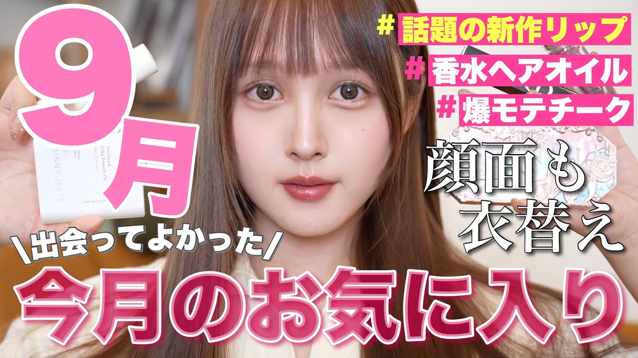 こんばんは。しかの間です。今月も1ヶ月 のお疲れ様でした。と言ってもですね、 あと1週間半ほど残ってるんですが、 ちょっと来週のスタイ動画が埋まっちゃっ てて、ちょっと早め。さあ、9月も下旬に 片足突っ込んだということで、これはです ね、毎月恒例の今月のお気に入り紹介やっ ていこうと思います。じわじわ涼しくなっ てきたんじゃないでしょうか。嬉しすぎて 夜とかめちゃハッピーじゃない?多分私も なんだけど視聴者さんも結構秋好きな方 多いと思う。今月はですね、あの9点で 買ったものとかも結構多いのと新作 アイテムなど結構季節の変わり目や衣買え 画面もやっていこうじゃないかと収集した アイテムたちが多めでございます。マジで どれも可愛いので是非参考にして いただけると嬉しいです。それでは早速 始めていきましょう。本日もゆっくりし までお過ごしください。 さあさあ、やっていきたいと思います。 ストップバターはこちら。ラカ巻きし グレイヤーティントの619番ポージング でございます。ゲットしましたか?ラカの 新作、新作だよね。やばい。マジで可愛い よ。もうちょっと1番のお気に入りをもう 最初に持ってきちゃった。けからじっくり ちょっと見ていただきたいんですけどの ガラスで包まれたみたいな容器めっちゃ 可愛くないですか?で、はい。今回私が 購入した色は私のさ、青みというか ちょっとダークな毛布系好き。はい、まず 発色はこんな感じでございます。はい。 好き。結構ね、口の色暗くね、なるんです けど、マジでブルベさん大優勝するぐらい ちょっとブドをね、もっとコークみたいな したブルーベリーっぽい色合いでもあるか も。遠めから見てもね、つやっとしてると 思うんですが。そうなんです。これ ガラス玉みたいな艶ヤが宿るテントでして 可愛いので早速塗っていきます。 うーん。可愛い。可愛くない?この毒身が さ、開きやない?可愛い。ふーん。いかが でしょうか?私はめちゃくちゃ好きな タイプの発色です。めっちゃ軽いわけでも ないし、めっちゃ重いわけでもない。本当 中間って感じ。なんか口閉じてもね、なん かベタってくっつくこともないから不快感 はなし。結構ティントって塗ったら最初 可愛いんやけど時間が経つと色変わること ありません?ラってやはり色転びしないの で特にこれ多分ね、全種類ラカ持っては いるんですけど色転びしにくい。本当 ずっとこの色っていうのが非常に助かり ます。うーん。可愛くない?ちょっとね、 オイル感もあったりするので保湿力もある 気がします。うん。このさ、めっちゃ黒く なるわけじゃないんですけど、このダーク な色合いがね、たまらなく可愛いです。私 的にね、この秋1番のリップになりそう です。さいなんですが、ちょっとまた何目 って感じなんですが、こちらのトルー ディメンションラディアンスバームの シェリーピンクでございます。はい。もう 本当何本目かな?言って3本目、4。この ね、ハイライトすごい大好きなんですけど 、国際線早くついちゃってさ、薬局 うろうろしてて、テスター試したら可愛 すぎたので買っちゃいました。一応チーク カラーなんですけど、ハイライト効果も あるので、これ使う時はもうあんまり ハイライト塗らんかな。ご覧ください。 このつやめき方。チークカラーも何色か あったんですけど、中でもナチュラルな ピンクカラーを購入しました。結構今 ツヤツやしてるんですけど、指でね、あの 、ぼかしてあげて馴染ませてあげるともう 少し艶ヤを抑えられます。可愛すぎない? すっげなの肌が。クイスティックタイプは そのままね、塗っちゃうと ファンデーションが剥がれてしまうことも あるので、私は指にこうやって取って塗り ます。ちょんちょんちょんちょんちょんっ て乗せていくの。はあ、可愛くない? かなりしっとりしてつやつやになるので マスクしない日に使ってます。わあ、 可愛い。斜めから見ても可愛いし、正面 から見ても水分量高く見えません。マジで これは肌がめちゃくちゃ綺麗に見えるので これ買った日につけたんですけども友達に めっちゃ褒められて友達にね貸して使って もらったんですけどめっちゃ可愛いって 言ってた。夏とかやったらさ、結構汗とか で崩れやすいと思うんですけど、これから の季節はあまりね、崩れ気にしなくていい のでガンガンツアメイクができるんです。 嬉しい。ハイライトいらなくない?今 リップがね、ちょっとオレンジあるもので 、まぶはね、グリーン入れてるんですけど 、それでも喧嘩しないカラーなので、 どんなメイクにでも合う色おすすめ。さあ 、続いて3つ目なんですけれども、コシラ です。こちらアバートトーンの デザイニングマルチパレットでございます 。パレットコンシーラーで1番好きかも。 全部で6色入っていまして、こちらから 鍵用シェーディング、赤身カバー、立体感 ボリューム、ハイライトですね。で、一番 万能で使えるベージュ。そしてくみ