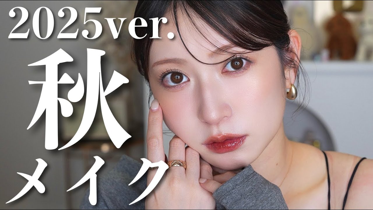 皆さん、こんにちは。アかりことした。 あかりです。さあ、今日はですね、こんな 感じで秋きメイク2025年バージョンを やってみました。今年もね、ちょっと時間 をかけて可愛い空きメイク考えてみたので 、是非真似していただけると嬉しいです。 それでは今日もアカりぬ女動画スタート です。 では早速メイク始めていきたいなと思い ます。保湿クリームと日焼け止め用 で最初にカ棒のクリームインデ2 リニューアルしたこのクリームを塗って おきます。朝インスタライブする時も塗っ たんですけどちょっと時間が経っちゃった からもうちょっと塗っとくわ。一応SPF 30のPA3+入ってるので今日私どこも 出ないのでこれぐらいでいいかなって感じ 。もうね線もそんな強くないかなって感じ なんでこれぐらいでもいいかもですね。 そうしましたら下地はお気に入りの汁ルの フローレスジェムセラムプライマー使って いきます。 こんな感じに置いて手で伸ばしていきます 。この下地ま、1番よく使ってるけど本当 崩れにくいし使いやすい。肌綺麗に見える しね。つやつや系にしたい人とかは ちょっと物足りなく感じるかもしれない けど、補正力欲しい人はこっちおすめです ね。こんな感じで若干トーンアップさせて 、で、お花回りとかのこの赤身に関しては これじゃあ全然カバーが間に合わないので トーンのペタルフロートフローレスタッチ 02番のコンシーラー使っていきます。 この緑で消していきます。マジでなんか 毎月レベルで風邪引いてる。 やばい。もうまた風邪引いたんですよ、私 。キビアトだったり気になる赤身のとこに 先にグリーンをちょっと仕込んどきます。 で、この上からファンデーションをやって いく感じ。今日はね、チークもちょっと 外側に塗りたいから、この内側の赤身とか もあんまりいらないんで、ま、うっすらね 、そんながっつり消さなくていいんです けど、うっすら緑でカバーしときます。 鼻回りとかに関してはちゃんと消すね。 で、気になるシミとかも先に消しちゃい ます。 後からファンデーションするので、 ちょっと手で雑にいっちゃって、 ファンデーションがこちら。バイ話の セラムフィットスキニーグローリキット ファンデーションの17番。SPF50+ のPA3+。ちょっとこれ分離してるので しっかり振ってから使います。このファン でね、結構綺麗なんですよ。結構カバー力 もありつつ、なんかプルンと綺麗なお肌に してくれるので、これ塗っていきます。 どう で、この頬のこの高い位置をちょっと しっかり目にカバーしたいので、2度付け していきます。 おでことかはね、うっすらで大丈夫 でもどうやろう。なんか私は結構こう グローでオイリーで好きなんですけど、 もしかしたら手かりやすい人はちょっと 使いにくいって感じるのかな。乾燥肌の人 はね、結構いいと思うんだけど。決めこマ やから艶肌になるので私は結構好きな ファンデーションですね。 時間経ってもそのドロドロに崩れたり するってことは全然私はないのでヒットし てしまえば大丈夫やねんけどなんかメイク 中とかにこうやって塗ってる時点で ちょっとこう油分が気になってる人とか だったらもしかしたらちょっとこれは合わ ないかもしれないです。乾燥肌の人とか あんまりこう皮脂が出ない人にはおすめ。 このファンデーション自体にちょっと油分 が多い気がするので合う合わないはもしか したら結構あるかもしれないです。ただ めっちゃこう剥き卵みたいになるので私は 結構好き。じゃあスポンジに最後手に残っ たやつこう吸収させて全体的に叩き込んで いきます。 うん。こんな感じ。じゃあパウダーして いきます。パウダーは姿勢道のマットの方 使っていきます。エッセンススキン パウダー02番ですね。しっかりパフに 入れて外側から塗っていきます。これ セフォラのパフでお土産でもらったんです けど、細かいとこまで濡れてなんかこう やって指っ込めんのなんかこう鼻回りとか 細かいところ塗りやすい。とりあえず 顔回りから押さえていきます。 普通に普段使ってたパウダーだとこんなに たっぷり塗ったら乾燥するんですけど、 このパウダーだったら乾燥しないから しっかり塗っちゃう。目の周りとか。眉毛 の中とかで、この目の下とかこの頬とも ちょっと艶押さえる程度に塗っておきます 。今日パウダーチークしっかり塗るので ちょっとしっかり塗ります。後でパウダー チーク塗った時に固まってつくのやなので ちょっと塗っておきますね。このはですね 、ちょっとベースメイクしっかり目な感じ がトレンドっぽいかなと思うので今日も ちょっとしっかり目にやっておきました。 今日は色味的にはちょっと赤身ブラウン系 でメイクしたいので、まずアイメイク。ま 、いつも通りビューラーしていきます。 ビューラーはちょっと大人っぽくしたい から緩やかなカードにしておきます。 で、まずベースにこちらのシの クラッシュドジェムのパールウィスパー 使って