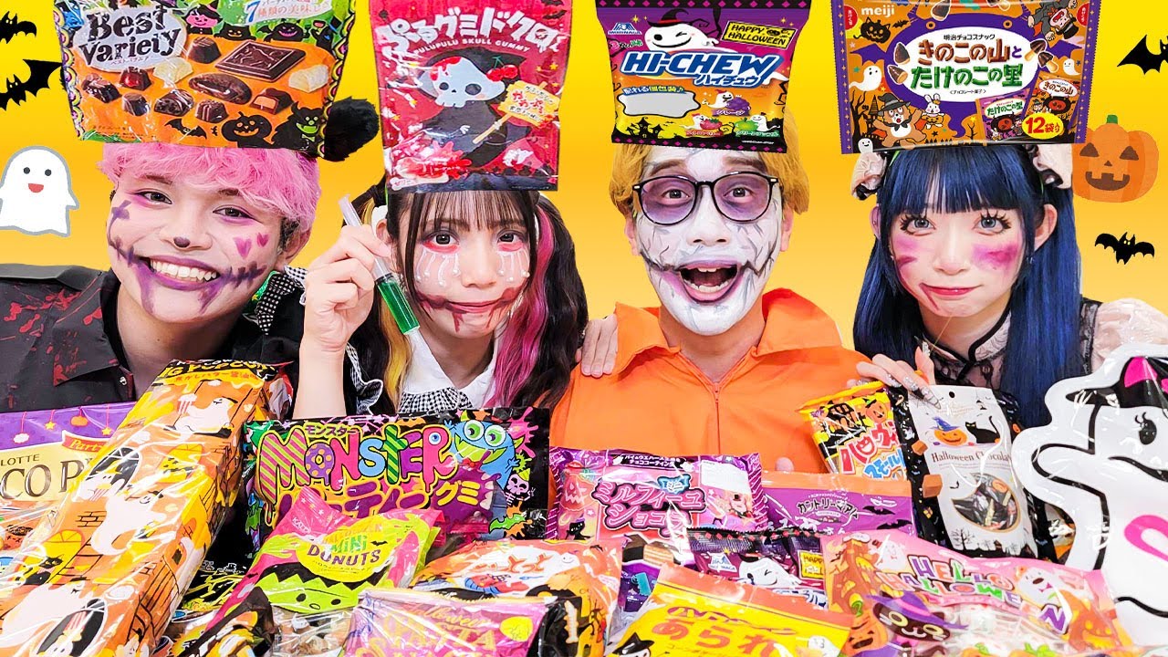 頭の上のハロウィンお菓子届きるまで帰れません。イエー。 この世からイケメンを消しに来たぞ。顔割れ男だよ。 カメヘラみです。ハめちゃんです。 かぼちゃは美味しいな。せオりんです。 どうも。 メンバーには頭の上にターゲットのお菓子を乗せてもらう。 頭の上に乗っているターゲットのお菓子を自分で見ることはできないよ。予想した頭の上のお菓子を早く食べれた人の商人。それではハロウィンパーティー [音楽] スタート。 スタート。 [音楽] はい。というわけで早速食べていこうと思います。 はい。 みんなどれが食べたいとかありますか? ある。いっぱい。 じゃあ選んでいこうと思います。 はい。 こういう風に個数が多いやつとかはあのスタッフさんが 9時でやってくださるようなでうまく 9時でやっていかるかことね。 なるほど。 うわあ。 いやむず きついよ。みんな おかしいんじゃない?これは 決まりました。 まった。 決まった。 はい。 せーのこれ。 ちなみにこのポップコーン小がしバター醤油味じゃん。いきます。せーの番に。お わわわ。よっちさん。 俺か。これは銃入れていいと思う。 これ開いていいの?一旦コーンポタージアンドチーズ味らしい。美味しそう。 行くぜ。 これ。 うわ。 お お いい量だね。いい量。じゃあみーちゃんはごのやつ選びます。 [音楽] 何個?何個? ああ。3。 おお。 やばい。結構食べなきゃいうやん。 おっととはでも軽いですから。 軽いすね。 軽い。 せーの。先生。いただきます。 おった。 最高なんだけど。 ポップコーン食べれるなんて。 あで行きます。 あ、 これはい。だきました。 うま。 本当だ。 これみんな絵柄が見えてんのかな? [音楽] これ。ふ。 めっちゃ可愛い。兄ちゃんみたいに可愛い。 今来てさ、すごいさ、お菓子売り場はもうね、ハロウィンしですよ。 うん。 本当ね。ほぼハロウィンじゃない?ですよね。 うん。これ誰が集めてきたの?こんなにいっぱい。 誰買ったの? みーちゃん。 うん。 すごい。 これね、実家の名古屋で買ったんだけどね、満売になって他の荷物持って帰ってこれなかったの。 [音楽] マジか。 大変じゃ。どうた? 実家から送ってもらうことにした。 え、何のこと言っちゃ何か言いたいね。 私はねハ中国のチャイナ [音楽] かいいね。 だよ。 これさ、普通に買ったらブカブカで切れないからおばあちゃんにこれ直してもらっね。 [音楽] すごい。 よりちっちゃくしとか言わせてください。 はい。実私ボの中で 1番細いです。な わけないじゃん。 わないからなって言ってる。これ全部つけてきてんの。格好メイクみたいな罪だなと思ってストすぎて 俺も特殊メイクしてるっていうか俺結構俺前さ自分を殴っても 帰った頃にすごい戻る。 うん。帰った頃に決めないってこと。 やばいね。 いや、まだのブスに行ってきてたこと。そうそうそうそう。 元々ブスなんじゃなくんだ。 そう。 元々ブスなんじゃなくて、おい、お前なんだこれ?俺はね、これ囚人かな? うん。 ま、海外っぽいよね。 うん。 海外のか?いい。え、なんで捕まっちゃったんですか?囚人って ドリンクバー飲みすぎた。それだけ めっちゃ可愛いやん。服ね 似合ってんじゃん。やっぱ可愛いって。何?どうした?あ、うわ、うわ、うわ。単純単純好きになる。 僕はえっとポリスウルフ かいい。 いつもさ、可愛い系じゃないですか?僕ってなんかちょっとちょ、イメちゃにしたくて 自分でわざわざこれ買いました。 え、でもさ、オスリンって言うのやだって言うじゃん。 うん。こういうセオリーもいるかなって思ってだよ。 [拍手] まだ人含んですか? 本当も含 やばいよ、それ。僕だな。 はい。おっと。え、3 人完食したということでここからタイマーが動きいたします。ですね。 [音楽] 待って待って待って。ドン。 夢ちは食べきないと消えてしまいます。 やばくない?それもやばい。ちょっと待って。私まだ食べたいのいっぱいあるのに。 やばいよ、これ。やばいよ。めちっちゃい口。もうちっちゃい口が潰せ。潰せ。全部。うちもドーナツ食べたいな。でも水。え、 [音楽] うちドーナス食べたいんだよね。そ、 これだろ。おい、選んでいいんかこれ?おい、つもやめてください。それ選んですよ。 でも俺それ前回外れてたからこんな感じでマジで最後まで残った。最悪。 [音楽] 特パもありなんだよね。 大好きやぱの中もうね。 うん。ま、喋んなくていいから喋んなくていい。喋んないで。 残り15秒。 え、 時を止まれ。こち [音楽] 止まったんだけどみんな 1 個食べてくれそう。口開けてる。ほら。らしい。急げからね、みんな。待ってくね。 [拍手] [音楽] [音楽] 次はスタート。 お お。 あ、 あ、みんなおる。大丈夫。 早くイメージ食べて。食べて。 ああ、やった。 結果を1 人ずつ聞いていこうかなと思います。 じゃ、りんちゃんから。 はい。はい。えっと、ジオリの頭の上のお菓子はチョコレートですか? みーちゃんの頭の上のお菓子はおっとですか? 違います。 ちゃ