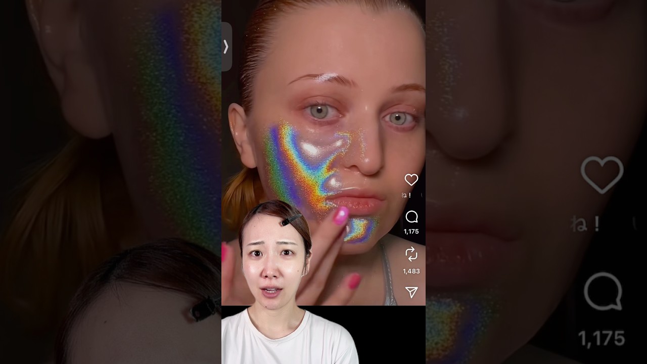 顔にラメを塗ったらミラーボールになれるってことやるきゃね。まず顔面にナッピングパックを塗ります。今回はメディキューブを使います。ひたすら塗って皮乾かします。はい。こちらのキラキラのシルバーラメを皮に塗ります。すごい [音楽] ギャラクシー。 この調子で地道に塗ります。おお、すご。引きで見るとシルバーなんだけどこうぼかすとうわ。 [音楽] ミラーボール完成しました。肉眼で見るとこんな感じ。え、これ現実で見た方が全然綺麗。 [音楽] 近いとわかる。今そこ [音楽] あのさ、ミラーネイルみたい。私が 1 番かが焼いてる。で、後始末は剥がすだけ。おお、来た、来た、来た、来た。 [音楽] もうだいぶ剥がせますね。はい。8割ほど 落とせたので、あとはクレンジングしよう と思います。皆様、これからの忘年会 シーズンにいかがでしょうか