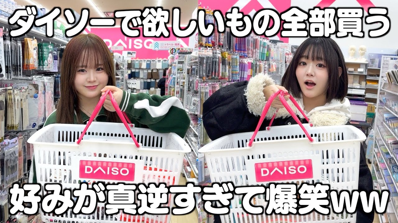 【ダイソー】好みが真逆の姉妹で「欲しいもの全部」買ってみた!カゴの中身が違いすぎて爆笑ww